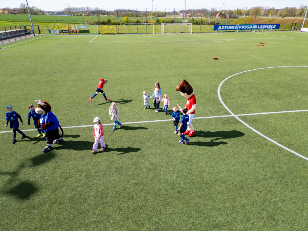 Besonders in Erinnerung bleiben wird aber auch der Maskottchen-Besuch: Arminia-Maskottchen Lohmann stattete gemeinsam mit dem St. Viter Maskottchen Vitus dem Camp einen Besuch ab und sorgte für strahlende Gesichter. Dazu lachte die Frühlingssonne vom Himmel. Das rundum gelungene Feriencamp wird übrigens auch im nächsten Jahr wieder in der zweiten Osterferienwoche stattfinden.